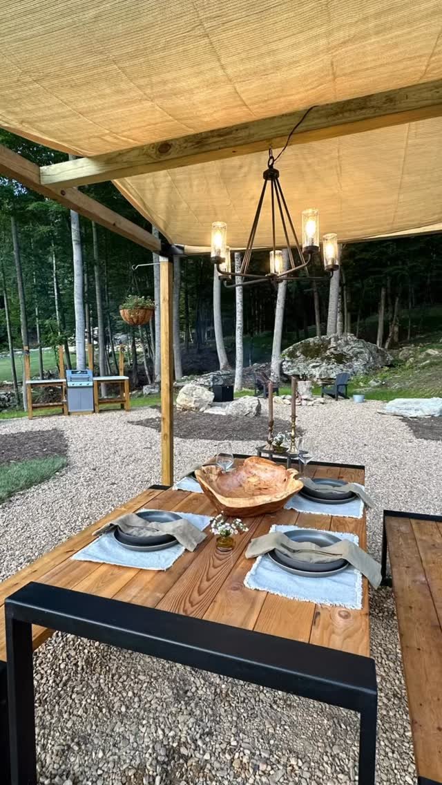 THE BARLOW offers a range of amenities to make your outdoor experience enjoyable. Each site comes equipped with a fire pit, pergola-covered dining table, and kitchen prep island with propane grill to further enhance your outdoor culinary experience.